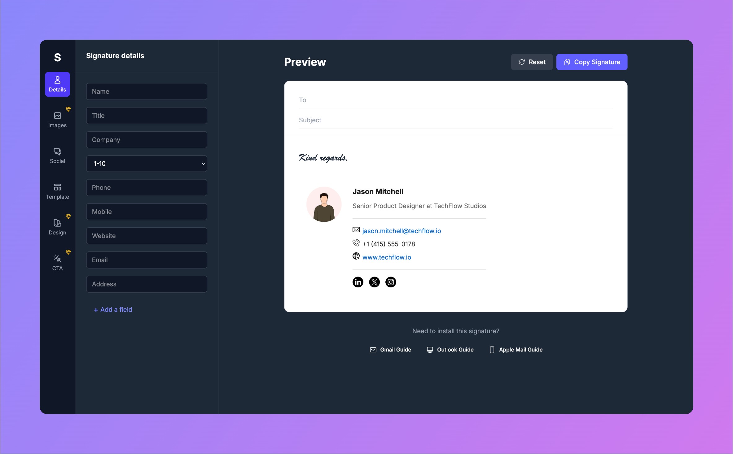 Create professional email signatures in minutes. Perfect for individuals seeking consistency and teams needing brand uniformity across every communication.